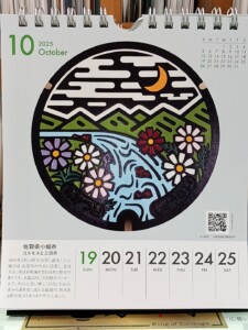 先週のマンホールカレンダーは佐賀県小城市 コスモスと三日月がモチーフ