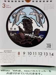 ブログ BLOG カテゴリーリスト 未分類隊長へぼ監督キャプテンおおもり君翠巒クラブいそろく砂かけばば〜 すべて TOPブログへぼ監督先週のマンホールカレンダーは岩手県宮古市 田老の三王岩と佐賀部のウミネコがモチーフ 先週のマンホールカレンダーは岩手県宮古市 田老の三王岩と佐賀部のウミネコがモチーフ 2026.03.15 へぼ監督 田老港の北に位置する三王岩は、高さ50m の男岩に女岩、太鼓岩が寄り添い白亜紀からおよそ1億年もの歳月をかけて荒波や浜風により形成された自然の芸術品です。港南に位置する佐賀部は100m近い断崖と大小30 近い岩礁からなり、5~8月にかけて10万羽のウミネコの繁殖地となり港が賑わいます。 Prev 一覧に戻る